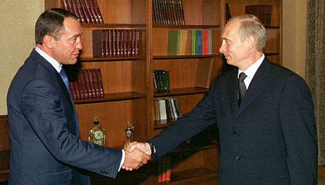 Mikhail Lesin (left) helped Vladimir Putin silence three independent television channels.